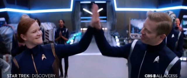 Anthony: O que diz para o mundo, para mim, sempre foi um relacionamento muito adulto. Dois seres humanos que são diferentes em muitos aspectos, e se equilibram mutuamente, aceitam um ao outro como eles são, assim como foi a pequena história que Stamets conta a Burnham no episódio 7 da última temporada – ele basicamente disse a ela para calar a boca, e ele tipo, tudo bem, é quem você é e isso é quem eu sou e eles imediatamente apenas respeitaram um ao outro sendo honestos e abertos. Então isso é algo que eu acho que é significativo por si só. Eu sei muito especificamente da comunidade de fãs de Star Trek – uma das minhas melhores amigas faz parte da comunidade de fãs de Star Trek há quarenta e poucos anos, e há um grande segmento da comunidade de fãs de Star Trek que é LGBT. E tem passado fome e necessidade de alguma representação direta. Você sabe, eles tiveram o momento em Deep Space Nine de duas mulheres se beijando, mas havia identidade de gênero que fazia parte daquilo que não era, você sabe … esses são dois homens cisgêneros em um relacionamento. E isso é algo que tem sido significativo e ressonante dentro da própria comunidade.